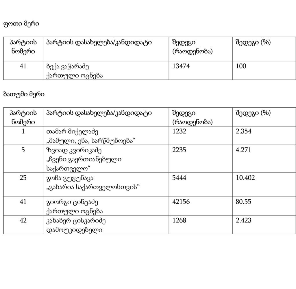 მთავარი სხვადასხვა ცესკოს თავმჯდომარემ მუნიციპალიტეტის ორგანოთა არჩევნების პირველადი წინასწარი შედეგები წარადგინა